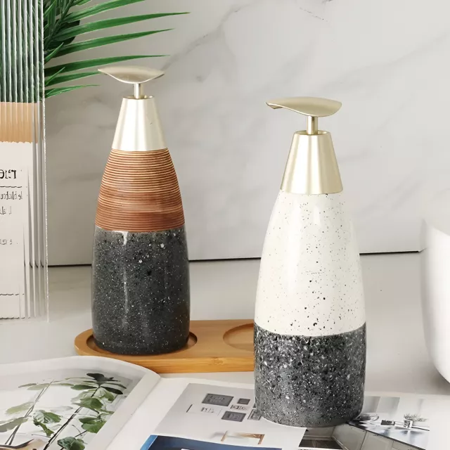 This dispenser bottle is thoughtfully crafted to combine durability with timeless appeal. Measuring approximately 7.8 inches in height and 3 inches in diameter, it fits comfortably on countertops, sinks, and shelves without taking up excess space. The pump mechanism ensures a smooth and effortless press every time, giving you just the right amount of product while minimizing waste. Made of high-quality ceramic, it resists stains and retains its luxurious finish for years to come.