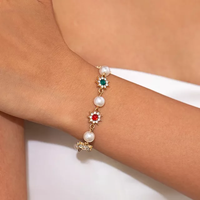 The combination of classic pearls and dazzling rhinestones ensures you stand out, while the soft floral design adds just the right touch of grace. Whether worn alone for subtle sophistication or layered for a bolder statement, this bracelet adapts beautifully to your personal style.
