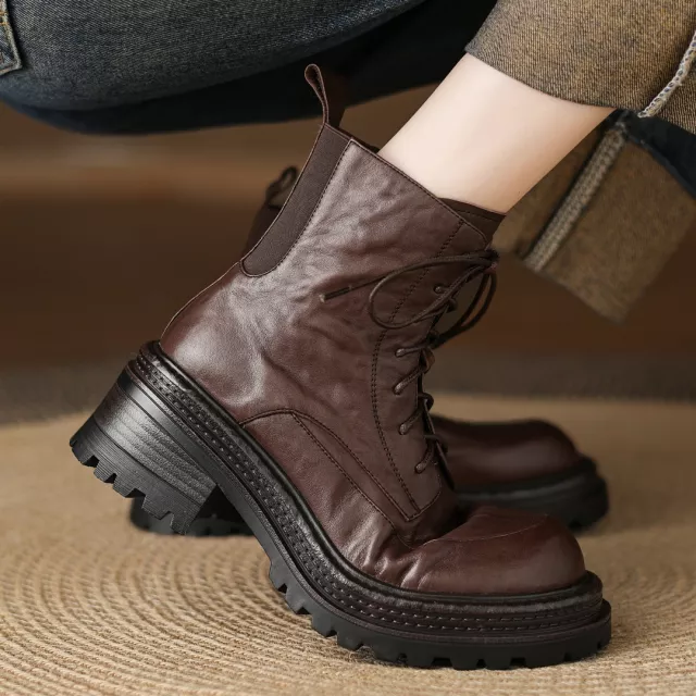 Unleash your inner edge this season with these stunning plus size women’s ankle boots, designed to elevate your autumn wardrobe with a perfect blend of comfort and attitude. Crafted from high-quality genuine cow leather, these boots offer a premium feel and lasting durability, while their round toe silhouette and chunky 1.77-inch heel deliver a confident and effortlessly cool look. The platform sole adds a touch of height without sacrificing comfort, making them ideal for everyday wear.