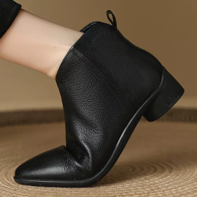 These boots are made with genuine sheepskin leather for a smooth, soft upper that molds to your foot over time. The inside and insole are lined with short plush, offering cozy comfort and breathable warmth—perfect for cooler autumn days. The 4cm (1.57 inch) round low heel provides just the right lift, while the 11-inch top height and 9.4-inch calf circumference ensure a snug and flattering fit around the ankle.
